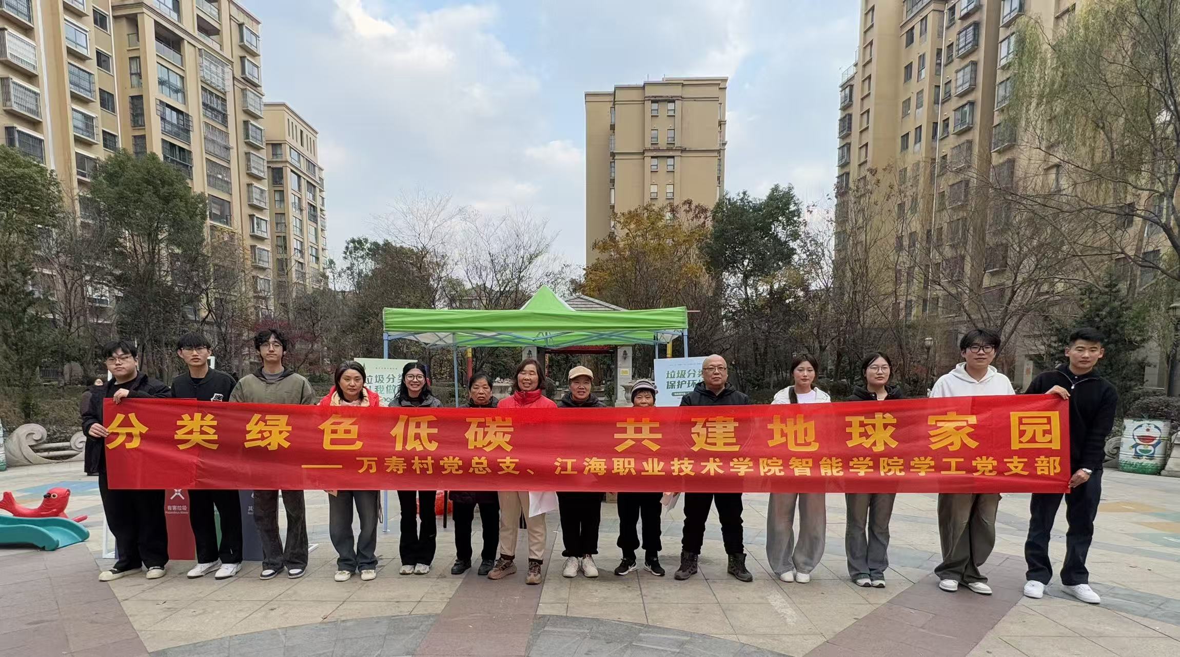 2025年12月10日,万寿村党总支联合江海职业技术学院智能学院学工党支部开展“分类绿色低碳 共建和谐家园”主题活动。