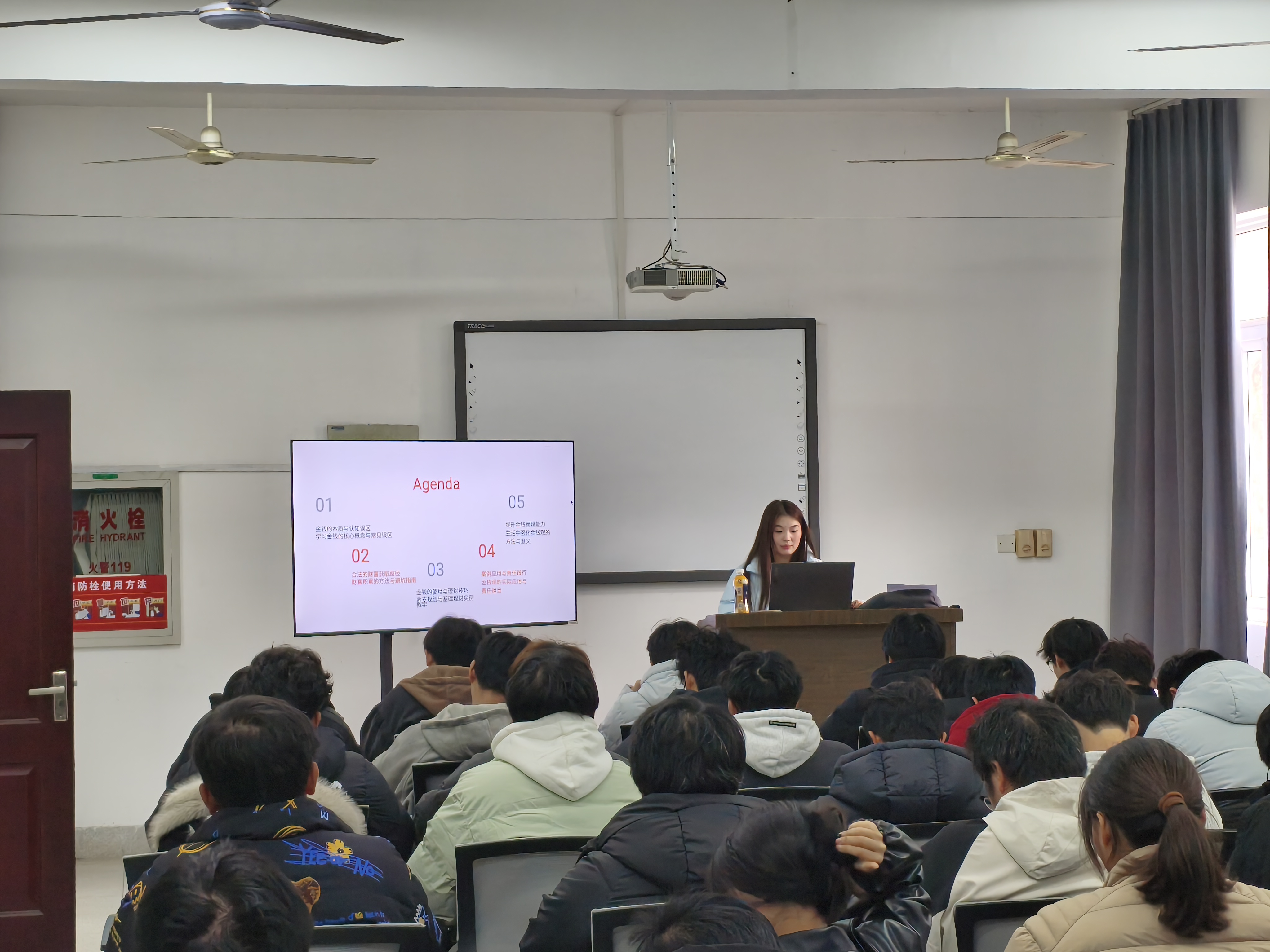 主题分享中,主讲人围绕“合法财富获取”与“理性金钱使用”展开详细讲解:针对学生群体,明确“学业优先、兼职历练”的原则,推荐技能类优质兼职,并强调“不交押金、不泄露隐私、不签模糊协议”的避坑准则,同时警示远离校园贷、电信诈骗等违法红线;结合“50/30/20收支法则”,指导同学们规划生活费分配,同步讲解应急资金储备、低风险理财方式等实用技巧,帮助大家建立清晰的财富管理逻辑。