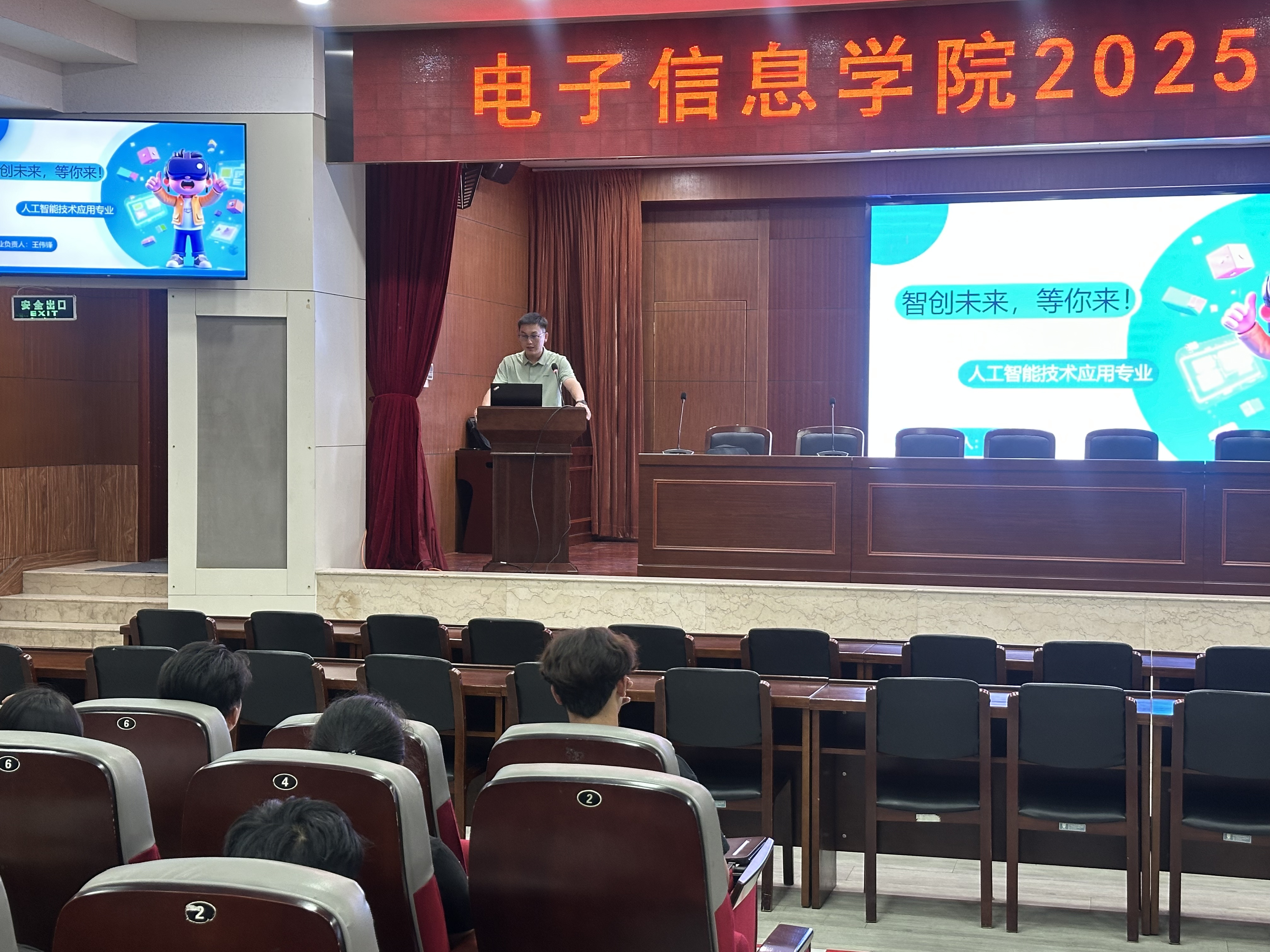新生入学初,电子信息学院2025级新生专业介绍会在学院内有序开展。本次活动由各专业系主任牵头主讲,覆盖计算机应用技术、物联网应用技术、人工智能技术应用、智能产品开发与应用、信息安全技术应用技术五大专业,既系统解读各专业发展脉络与培养特色,又衔接新生入学安全教育要求,为新生搭建起“认知专业、规划未来”的立体成长桥梁。