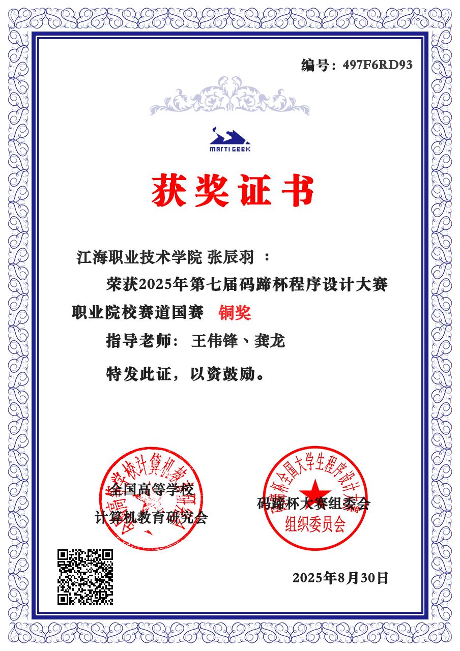 在全国总决赛的激烈角逐中,在学院王伟锋老师与企业导师龚龙老师的精心指导下,张辰羽同学勇敢迎战,最终斩获铜奖,实现了我院在该项赛事中的历史性突破。这一优异成绩不仅彰显了我院学子的创新精神和实践能力,也体现了校企协同育人的丰硕成果。