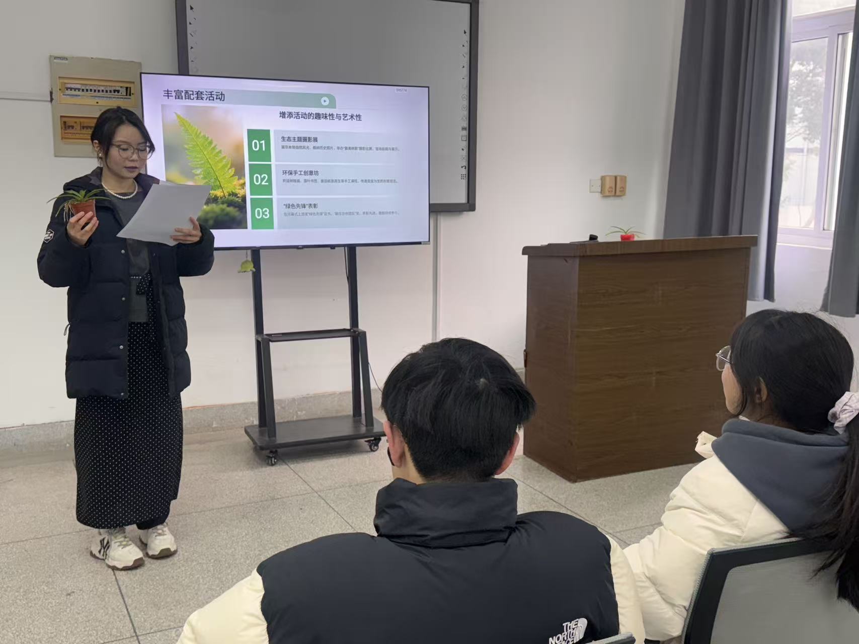 3月11日下午,电子信息学院团总支在一站式N206教室举行“一树新绿,万物向阳”植树节宣讲活动。信息安全2501史李莹同学为践行绿色发展理念,特举办“‘植’此青绿,共建家园”主题宣讲活动。通过讲述植绿护绿故事,激发公众生态责任意识,倡导绿色生活方式,凝聚共建美丽家园的蓬勃力量,让生态文明理念在言传身教中广泛传播。