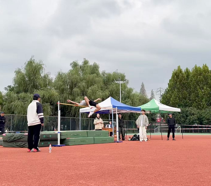 土木工程学院建工2401班杨域灵同学,以1.84米的成绩,打破校男子跳高项目记录,刷新赛场新高度。