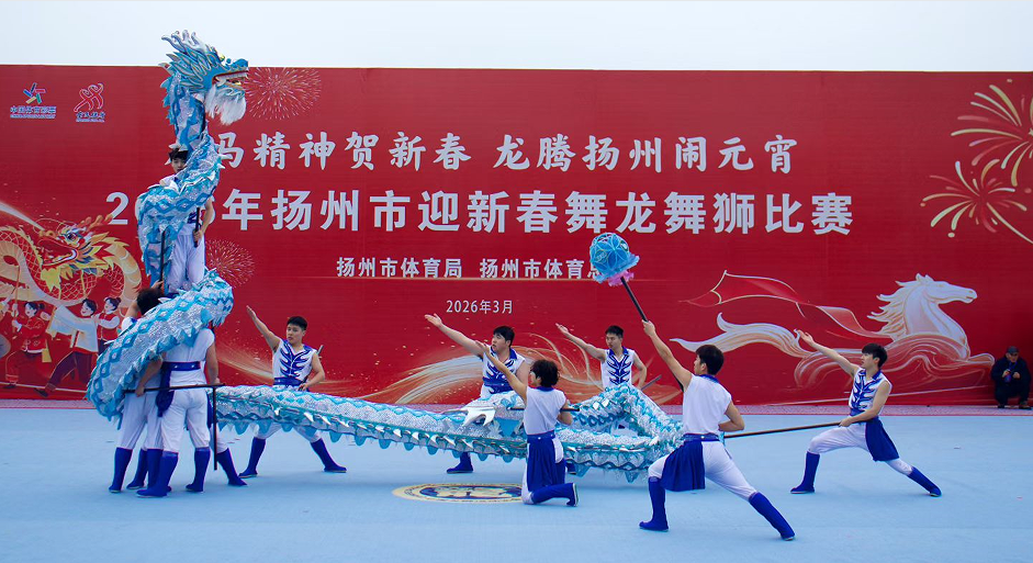本次比赛以“龙马精神贺新春,龙腾扬州闹元宵”为主题,汇聚了全市各地的舞龙舞狮精英队伍。董建岗同学所在的代表队在赛场上精神饱满、动作整齐,将传统舞龙的刚劲与灵动展现得淋漓尽致,充分展现了新时代青年学子昂扬向上的精神风貌和深厚的文化底蕴。