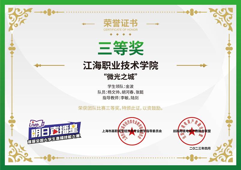 近年来,学生在“全国大学生电子商务创新创意创业挑战赛”“江苏省职业院校技能大赛电子商务赛项”“江苏工匠电子商务赛项与直播电商”等赛事中屡获佳绩,累计获省级以上奖项20余项。