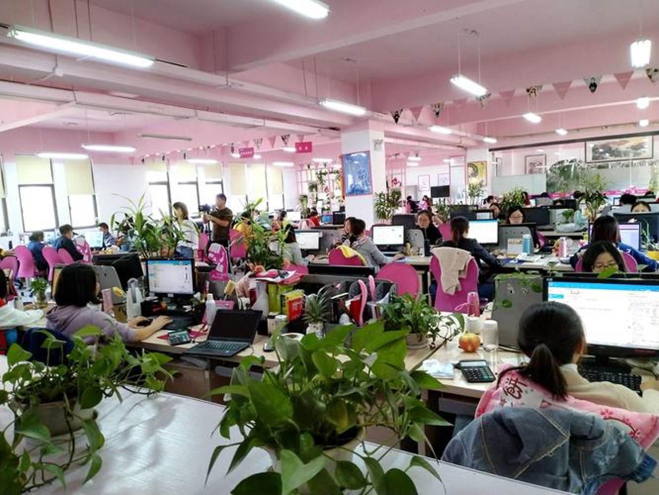 学生在笛莎电子商务部门工作场景