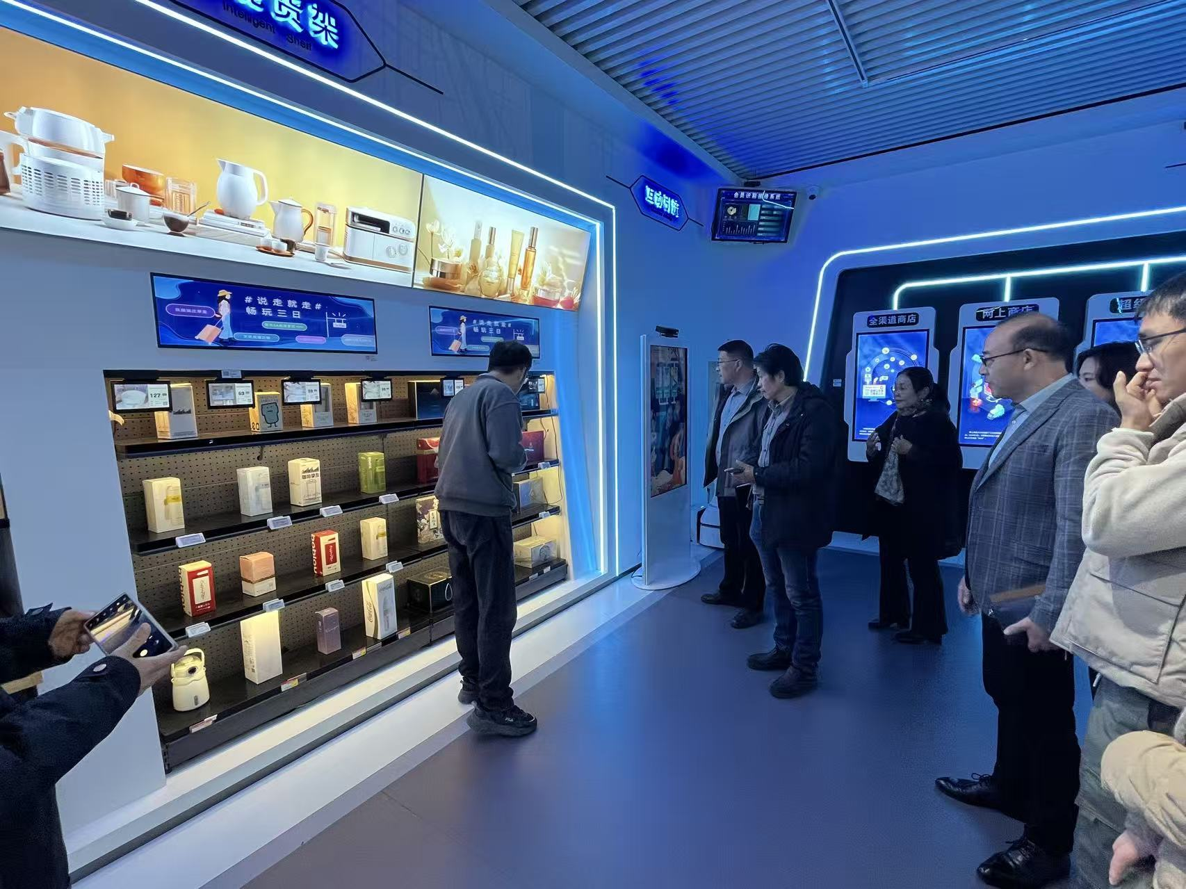 江苏经贸数商学院院长李卫华介绍了学院整体情况,副院长王春艳介绍了实训基地概况、实验室教学科研及管理运营机制、及跨境电商、市场营销等专业的实际开设情况。蒋平一行实地参观了江苏经贸产教园,考察了数字商务实训中心等教学场所。