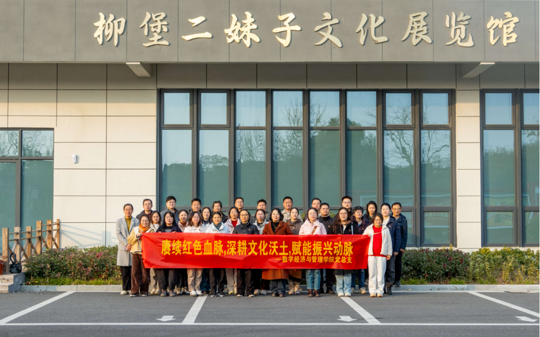 为深入学习贯彻党的二十大精神,扎实推进党纪学习教育走深走实,进一步增强教师党员党性修养与使命担当,2025年12月10日,数字经济与管理学院党总支组织全体教师党员赴宝应县柳堡镇“二妹子”文化展览馆,开展“赓续红色血脉,深耕文化沃土,赋能振兴动脉”主题党日活动。通过沉浸式参观学习,引导党员教师从红色文化中汲取奋进力量,在乡村振兴与教育强国的实践中勇担时代重任。