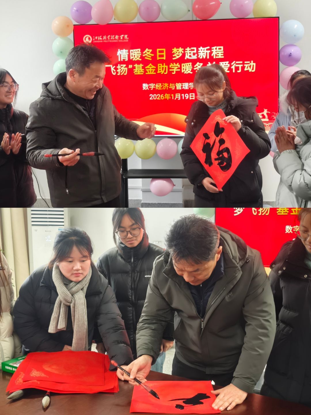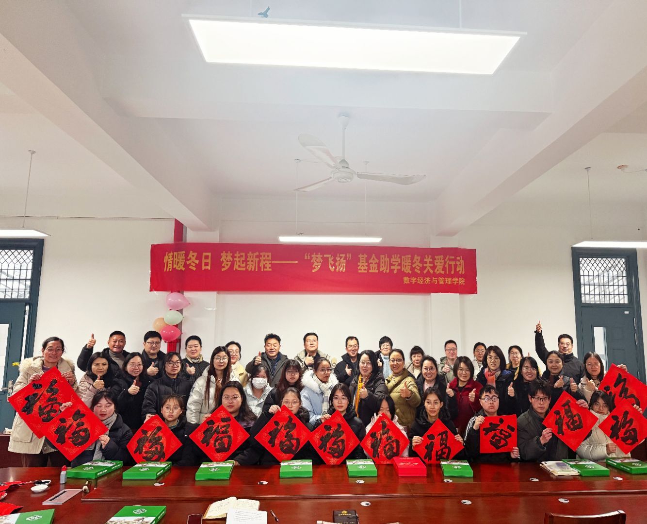 1月19日中午,数字经济与管理学院在厚德楼W352会议室举办“情暖冬日,梦起新程——‘梦飞扬’基金助学暖冬关爱”行动。本次活动由学院全体党员教师及15名受助学生共同参与,旨在通过暖心举措助力困难学子度过一个温暖、安心的寒假。