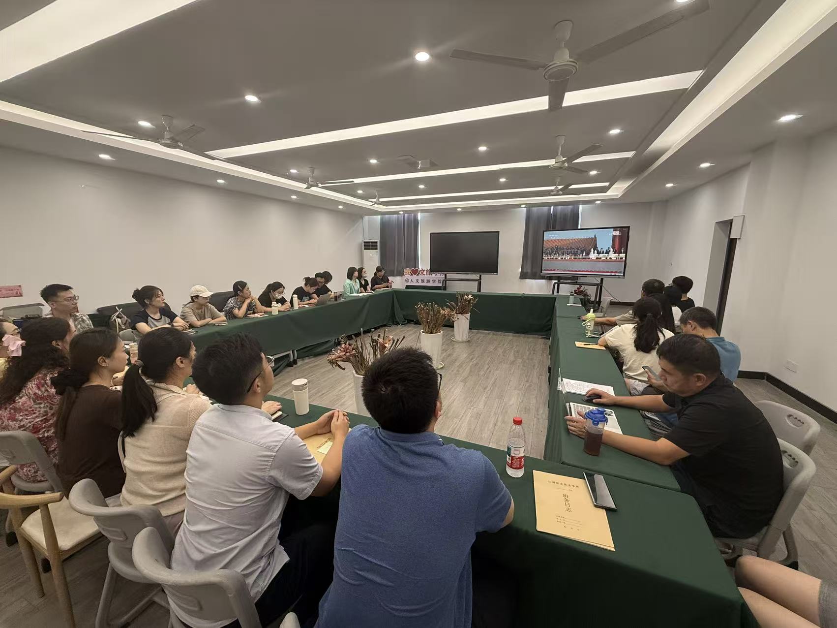 9月3日上午9时,随着天安门广场上礼炮的震撼轰鸣,中国人民抗日战争暨世界反法西斯战争胜利80周年阅兵仪式正式拉开帷幕。人文旅游学院组织全院教职工在院会议室集体观看直播,共同见证这一庄严而伟大的历史时刻。