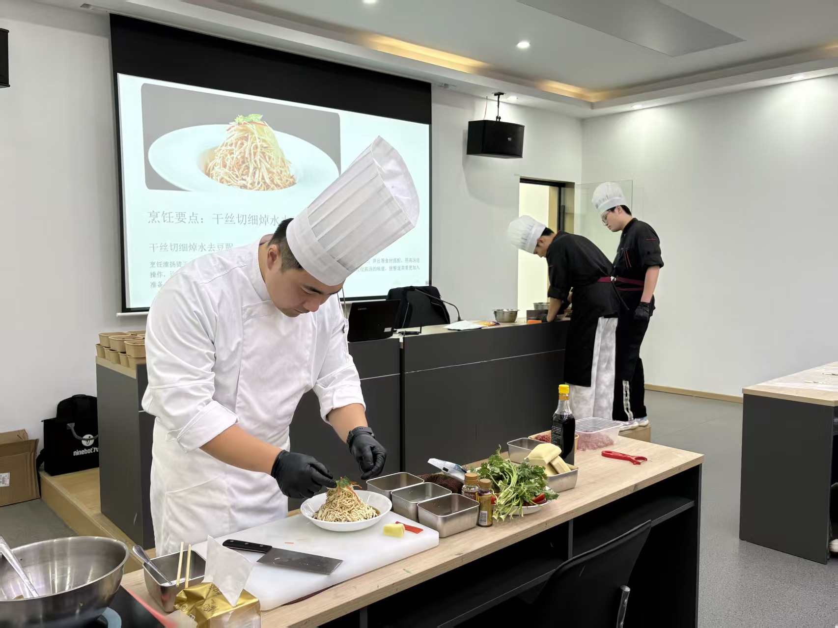 2025年10月22日,江海职业技术学院人文旅游学院团委组织江海小厨社团,于扬州邗江区竹西社区开展“‘耆’味‘食’光,乐享烹饪”活动,丰富社区老人精神生活、提升饮食质量。社团指导教师徐堃携两名学生,教老人制作淮扬烫干丝和海苔什锦饭团。