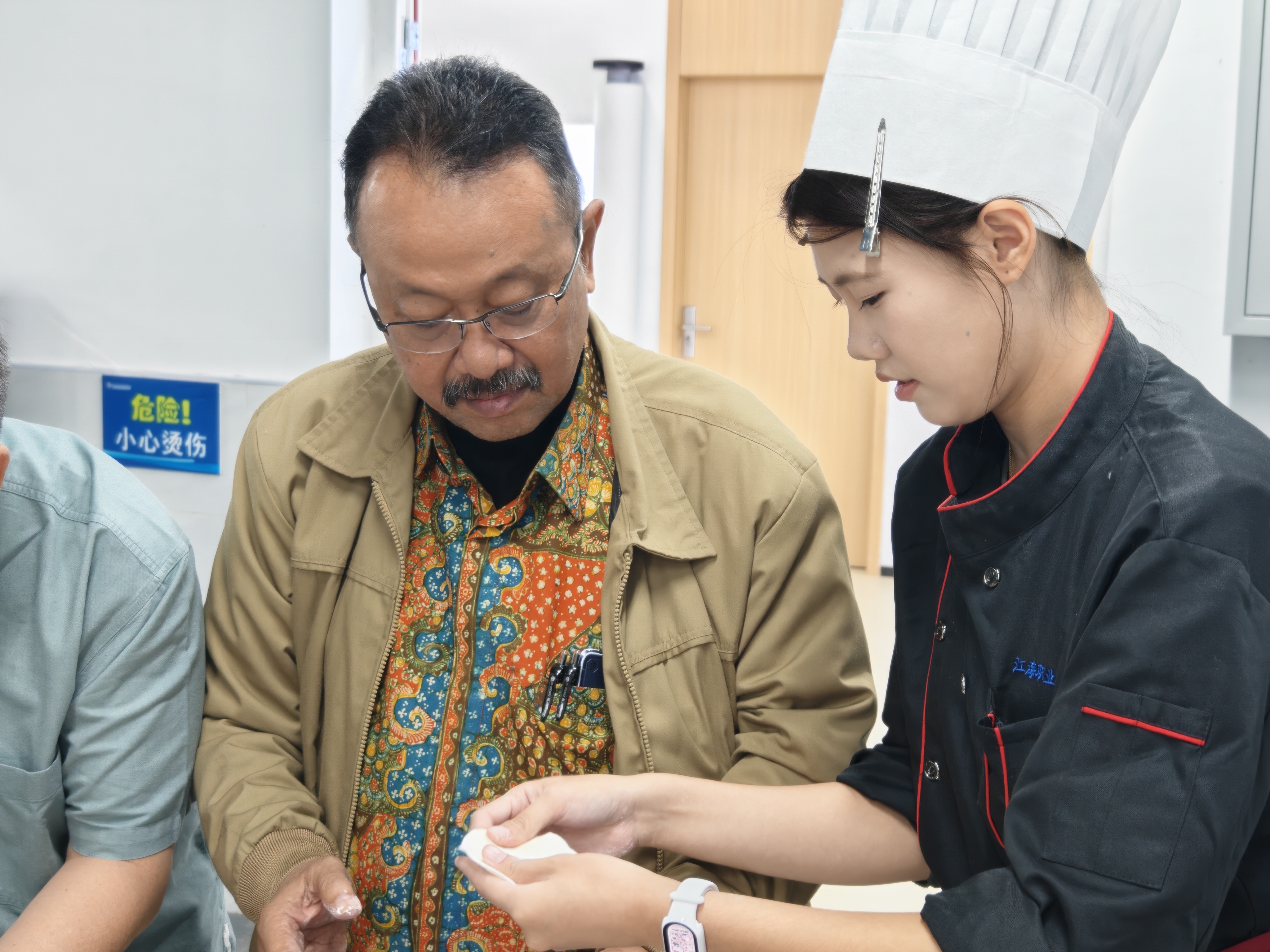 此次活动以烹饪技艺为桥梁,不仅向印度尼西亚代表队展示了中式面点的独特魅力和我校的教学成果,更搭建了中外文化交流的友好平台,增进了双方的相互了解与友谊。未来,“江海小厨”社团将继续开展各类文化交流与实践活动,助力中式烹饪文化的传承与传播。