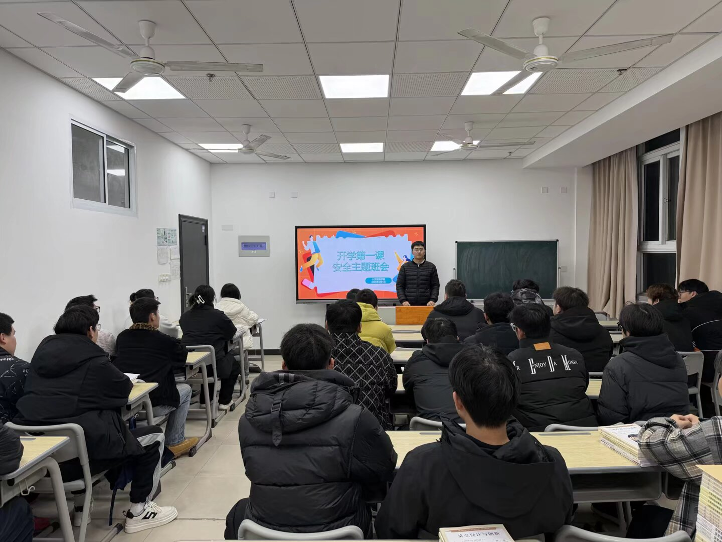 老师们首先向同学们送上了温馨的新春祝福,寄语大家在新年中平安顺遂、学有所成。随后,重点围绕安全教育展开。在宿舍安全方面,通过真实案例,强调了违规电器的危害,要求同学们做到“人走电断”;针对人身安全,提醒大家夜间尽量结伴而行,遇到突发事件及时求助;在财产安全环节,详细剖析了常见的电信诈骗套路,叮嘱同学们务必提高警惕,守护好个人财物。