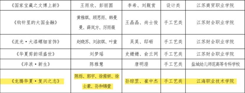 近日,由省教育厅主办的首届“艺韵匠心”江苏省高职院校学生创意作品展在徐州艺术馆举办。副校长傅伟应邀出席开幕式。我校文化创意学院5名同学创作的《龙腾华夏·复兴之志》作品勇夺职业创意组一等奖。
