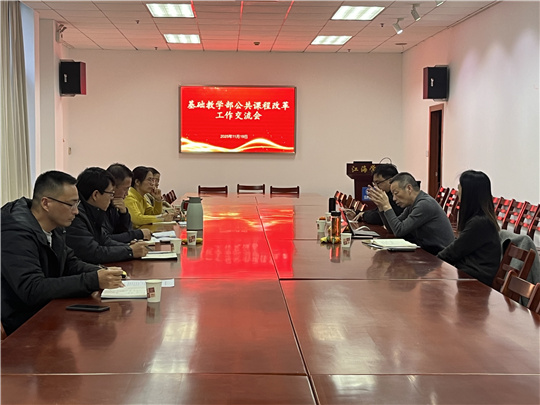 2025年11月19日,我校基础教学部公共课程改革工作交流会于马克思主义学院会议室顺利召开。副校长傅伟莅临会议,并发表了具有指导意义的讲话。基础教学部部长杨丽华主持此次会议,副主任刘剑钊以及公共课程组组长、副组长一同参会。与会人员围绕公共课程教学改革这一主题,展开了深入的研讨。