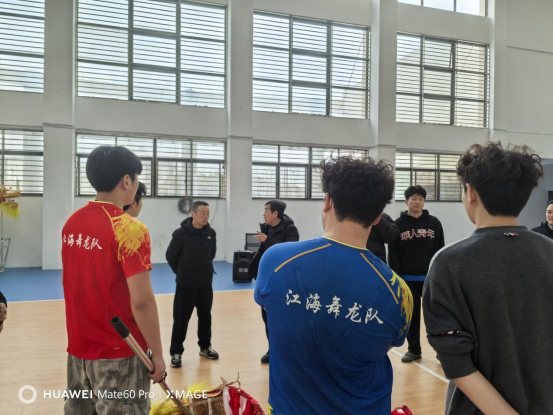 2026 年 2 月 28 日上午,学校体育馆内锣鼓铿锵、龙影翻飞,校舞龙队正全力备战 2026 年扬州市舞龙舞狮比赛。副校长傅伟亲临训练现场观摩指导,看望慰问备战师生,为全体队员加油鼓劲。