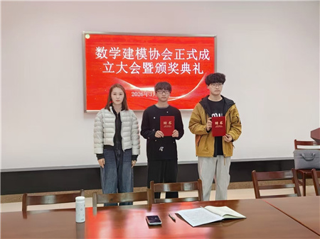 校团委副书记钱洋洋为协会两名负责学生颁发聘书,标志着协会组织架构正式建立。她在发言中对协会的成立表示祝贺,并寄语协会成员:要以数学为媒,以建模为桥,在探索中增长才干,在协作中收获成长,努力将协会打造成为校园学术创新的亮丽名片。