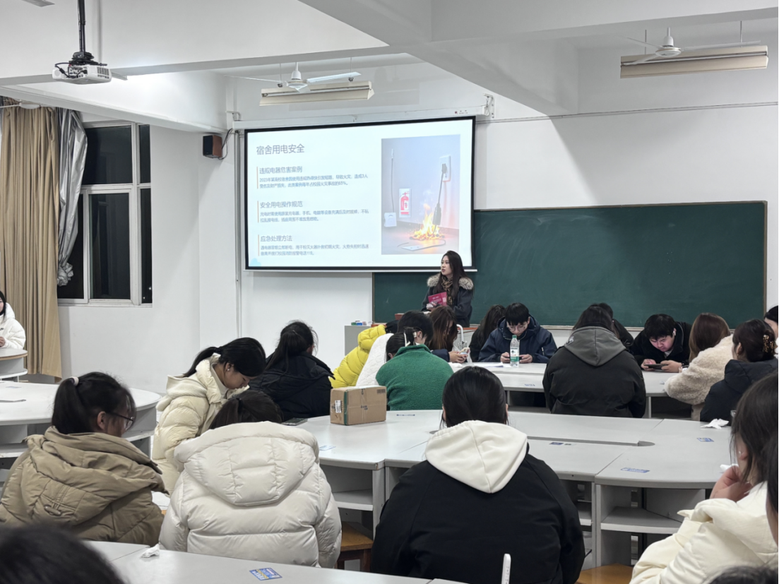 辅导员围绕多方面展开讲解,重点聚焦电信防诈骗、宿舍安全等四大安全板块,结合案例剖析高发风险,叮嘱同学们严守校规、守护自身安全;同时强调课堂纪律等日常管理要求,鼓励同学们结合专业制定学习计划,积极参与实践、提升素养。