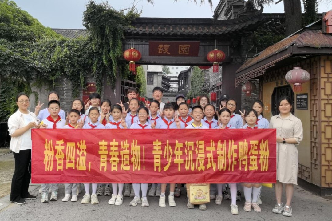 近日,数字经济与管理学院党总支联合施桥镇扬子新苑社区党支部、施桥中心小学开展了“‘周末小时光’红途研学青少年实践体验课堂——‘粉香四溢,青春造物!青少年沉浸式制作鸭蛋粉’”实践活动。青少年们走进谢馥春历史展区,用掌心的温度与专注的力道,将松散的香粉反复揉捏,精心压入模具,制作出一枚枚象征匠心与传承的鸭蛋粉。