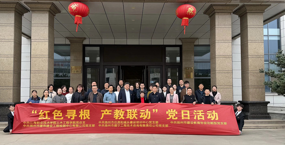 4月2日下午,土木工程学院党总支联合扬州市住房和城乡建设培训中心、扬州市建设教育协会、扬州市建伟建设工程检测中心有限公司、扬州市建宁工程技术咨询有限责任公司等多家共建单位,共同开展 “红色寻根 产教联动”主题党日活动。