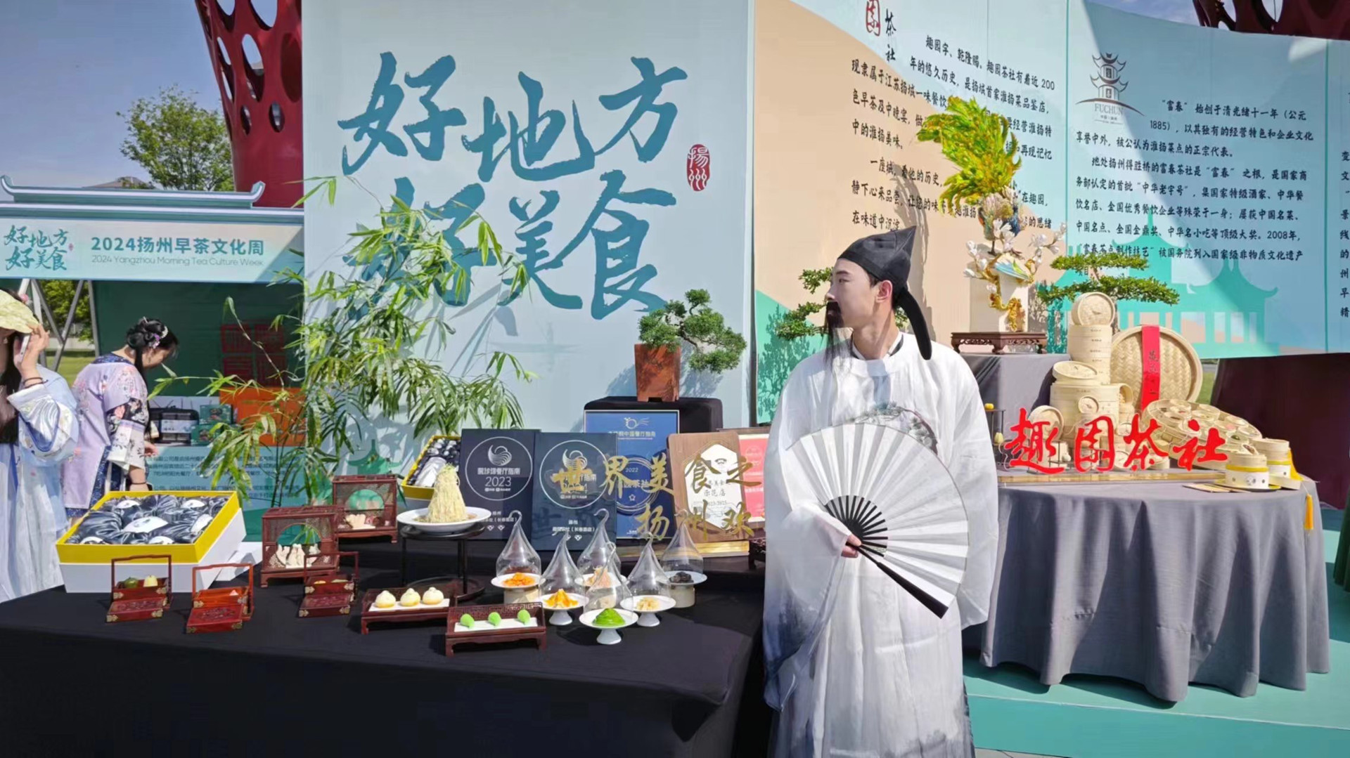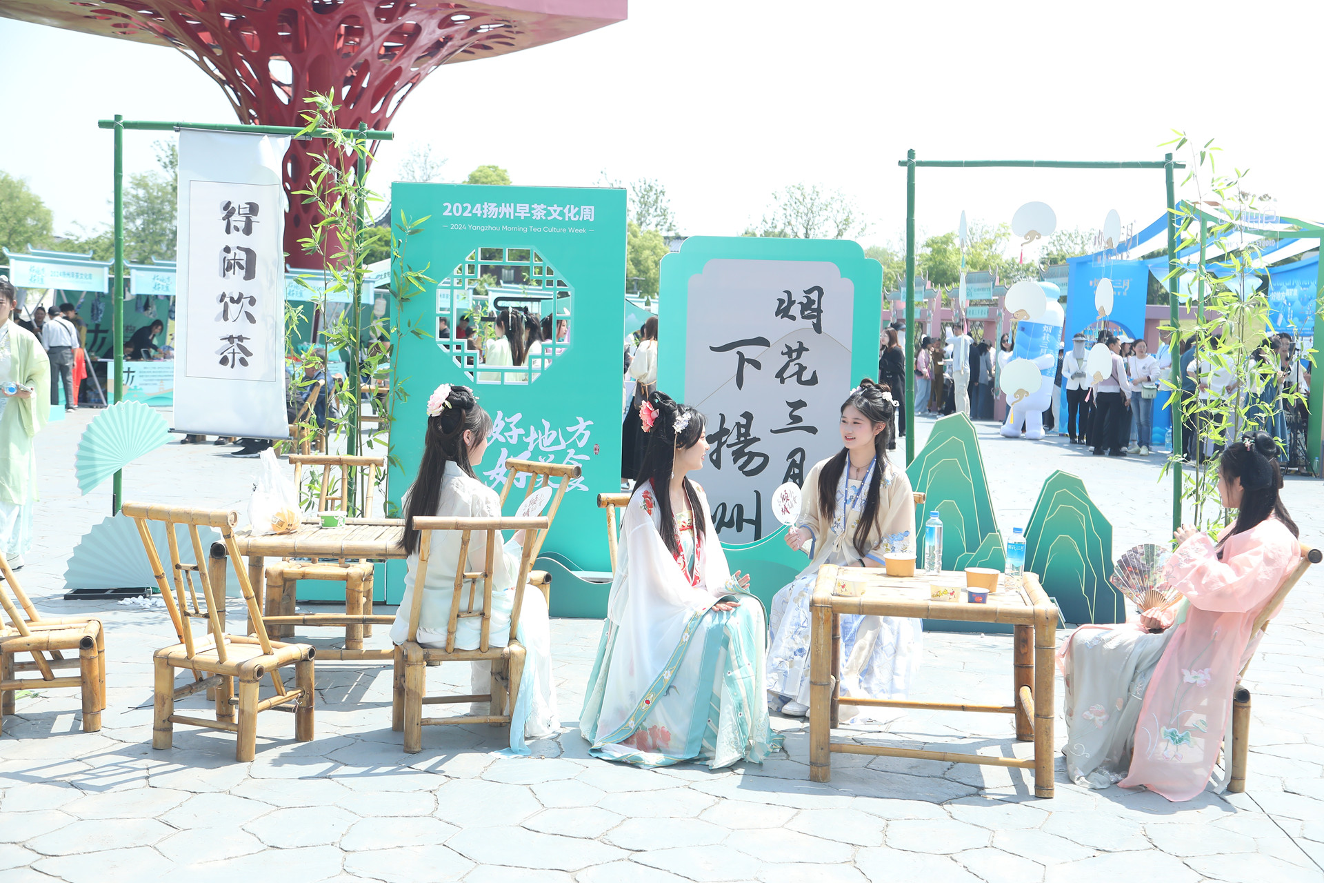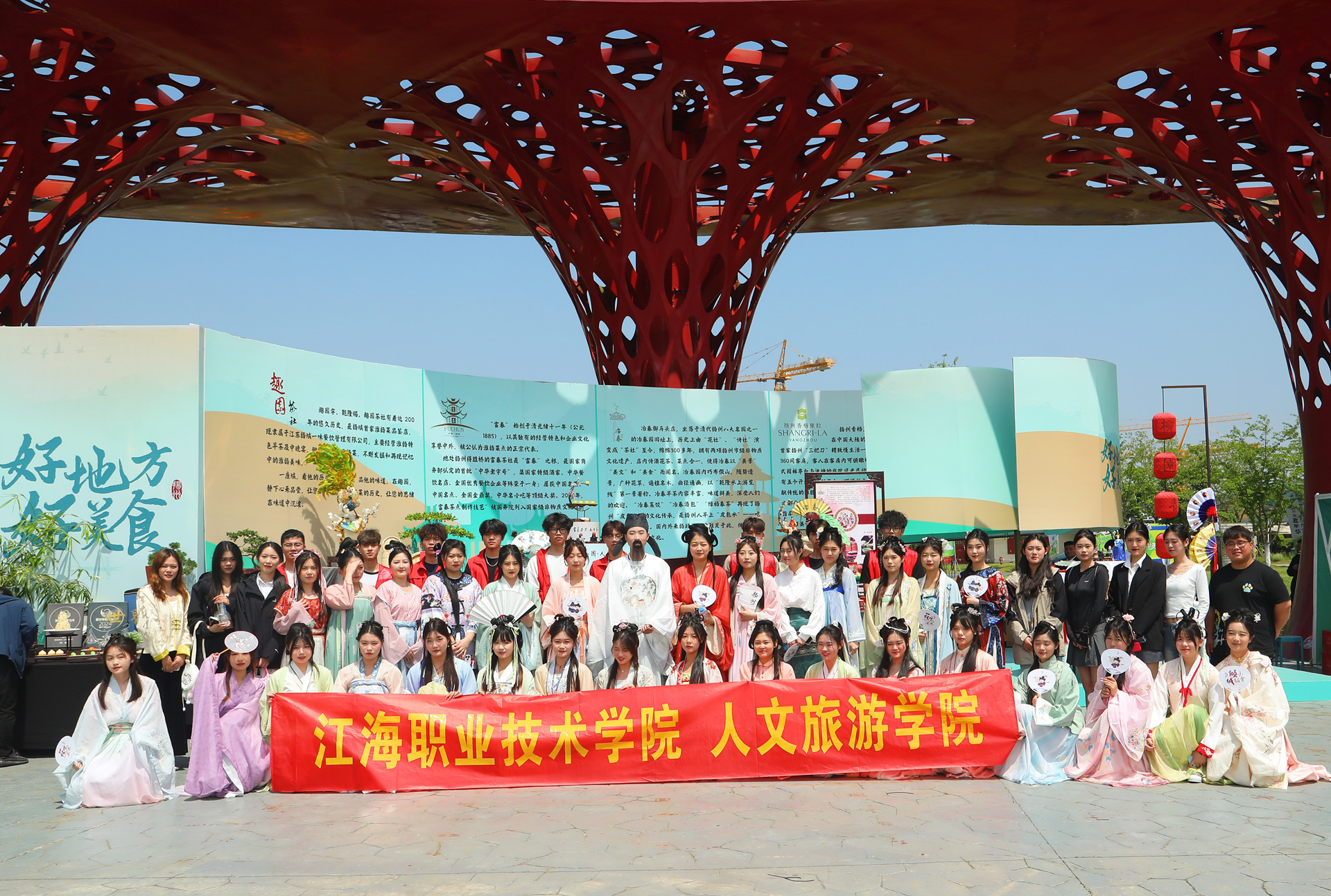 近日,人文旅游学院礼仪社50名学生应邀前往中国大运河博物馆,参加2024扬州早茶文化周开幕式活动。10位同学做场内礼仪服务,10位同学做场外礼仪服务,其余30位同学由“李白”领衔,以古风团队巡游的方式,带领市民游客沉浸式体验古风早茶市集。同学们的出色表现和热情的服务也在活动现场得到市领导和游客们的一致好评。