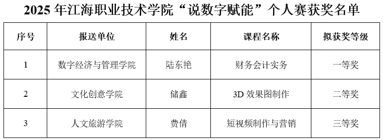 11月29日至30日,我校2025年校级教学大赛现场决赛圆满收官。本次大赛设“四说”个人赛与教学能力团体赛,全校104人次教师同台竞技。人文旅游学院教师团队凭借扎实的教学功底和出色的现场表现,在多个赛项中斩获佳绩,充分展现了我院教师的专业素养与创新活力。