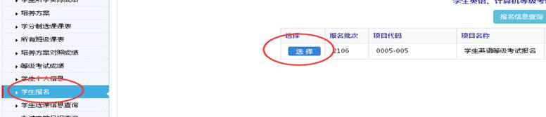 登录教务管理系统,网址:http://jxgl.jhu.cn,输入学号、密码(密码为JhXy@身份证号后六位,例如:JhXy@123456)、验证码,然后点击左侧用户本人常用功能的“学生报名”,进入“学生英语、计算机等级考试报名选项”,点击“选择”,核对身份证号等信息,然后进行报名。在报名情况栏查看已报名即可。(提醒:请同学们报名成功后退出报名系统,再按上述方法重新进入该报名系统查看一下是否的确有自己的报名信息方可。)