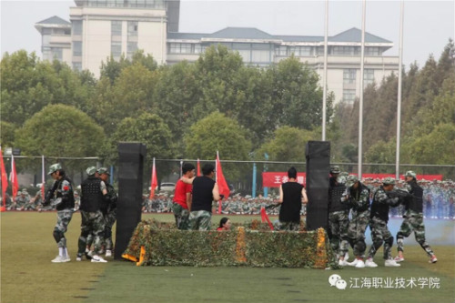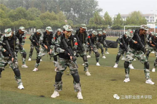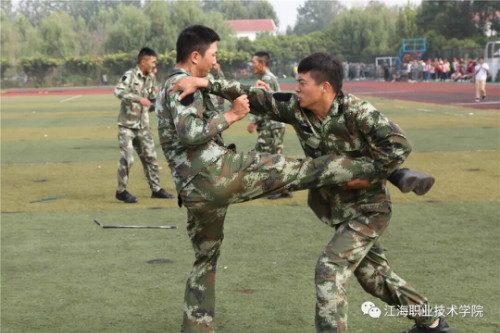 在分列式结束后,各营连以原二级学院为单位进行了防恐战术、警棍盾牌操、刺杀操、军体拳、连排战术对抗、短棍术对抗等军事技能表演。同学们的精采表演,获得全场热烈的掌声和赞誉。