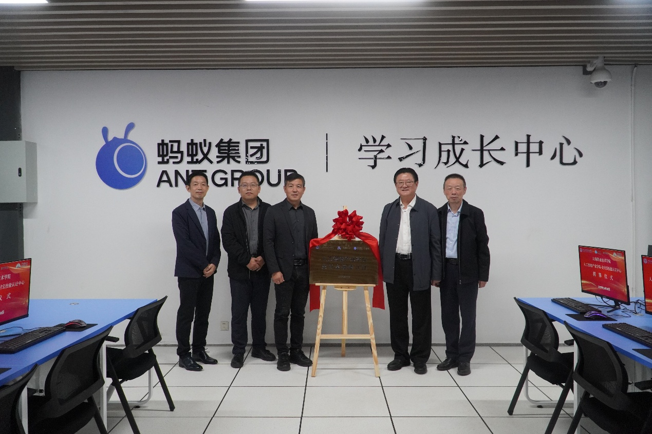 10 月 30 日下午,我校与蚂蚁科技集团、上海墨桐花开教育科技有限公司联合共建的支付宝人工智能产业学院揭牌仪式,在学校图书馆六楼会议室举行。校长刘宏、副校长傅伟,蚂蚁集团副总裁何勇明、墨桐花开总经理胡昕亮及三方相关部门负责人出席活动。