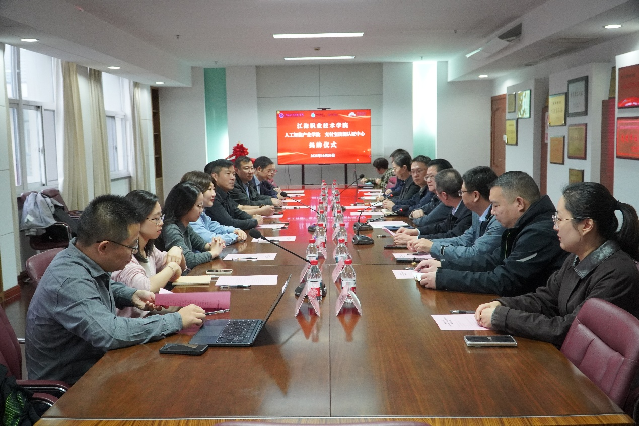 何勇明表示,此次共建是全国首家以技能认证体系为核心的人工智能产业学院,是集团落实数字化人才培养战略的关键举措。集团高度重视与江海的合作,蚂蚁集团将开放线上数据与技术能力,结合真实案例与系统化实训,助力学生实现从学习到岗位的能力转化,从容应对 AI 时代的岗位变革。他期待三方携手探索 AI 教育新模式,为职业教育数字化转型打造 “江海样本”。