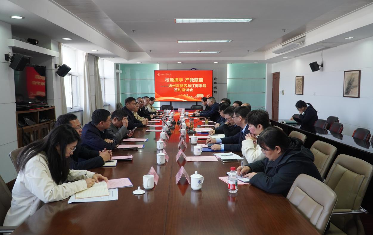 11月10日上午,我校与扬州高新区在图书馆7楼会议室举行校地合作签约座谈会。会议以“政企校协同发力、产教用深度融合”为主题,强化资源整合与优势互补,推动区域经济高质量发展与职业教育创新协同发展。邗江区人民政府党组副书记、扬州高新区党工委书记、管委会主任闫伟,扬州高新区党工委委员、管委会副主任王颖慧,扬州高新区科技局局长匡苇,我校理事长、党委书记刘金存,校长刘宏,副校长刘峻等出席会议。刘宏主持活动。