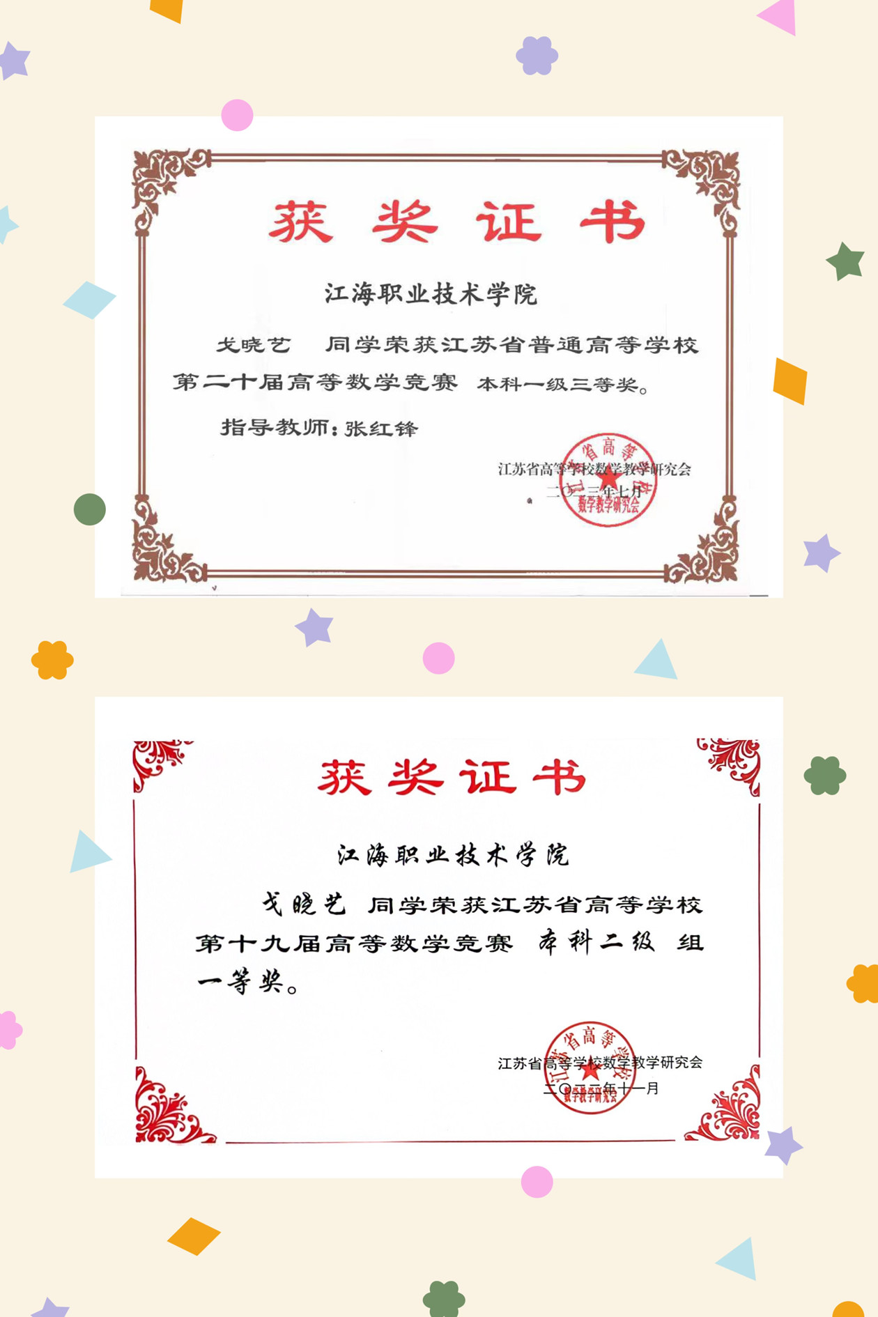 此前,这位话语较少的女孩,在校期间获得江苏省高等学校第十九届高等数学竞赛本科二级组一等奖、江苏省普通高等学校第二十届高等数学竞赛本科一级三等奖、学校二等奖学金、计算机程序设计员技能证书。
