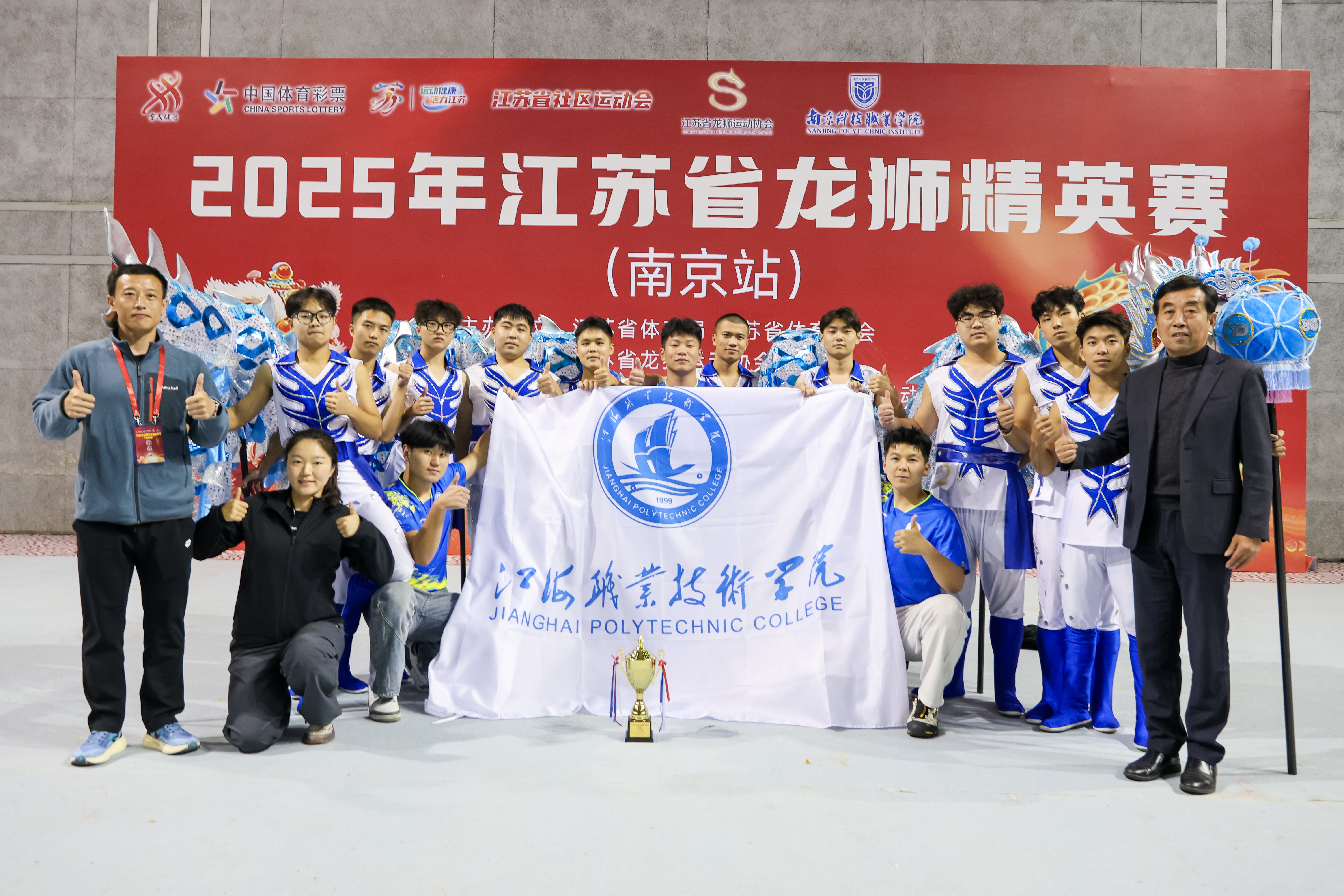 11月1日,由江苏省体育局主办、江苏省舞龙舞狮运动协会承办的2025年江苏省龙狮精英赛在南京科技职业技术学院举行。来自全省的13支代表队同场竞技。我校江海舞龙队首次亮相正式赛事,表现优异,荣获二等奖。