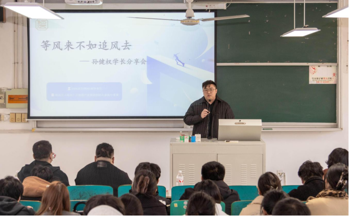 11月26日,数字经济与管理学院邀请优秀校友、顺远大健康产业集团创始人孙健权返校,举办“等风来不如追风去”专题分享会。孙健权从校园学习、职场历练到成功创业三个阶段展开分享,回顾了在校期间的学习时光,强调了扎实的专业基础对职业发展的重要性;针对同学们关心的职场竞争与职业发展问题,他建议“持续学习、找准赛道、勇于尝试”。学生们就“实习岗位选择”“考证规划”等问题与校友深入交流。学院副院长徐芹、党总支副书记任大娟、校企合作办公室及师生代表参加活动。