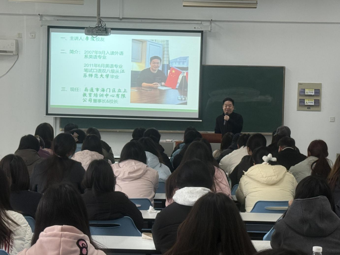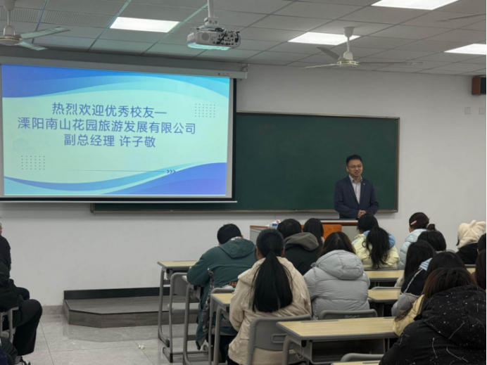 11月27日,人文旅游学院邀请溧阳南山花园旅游发展有限公司副总经理、韩贸062班校友许子敬重返母校,开展经验分享会。许子敬深情回顾在江海的求学经历,感恩母校教育为职业生涯奠定坚实基础。他结合自己从基层到高管的成长路径,分享了文旅行业的实战经验,并围绕行业趋势、人才需求转变等话题展开分析,指出当前行业更需要具备创新策划、市场运营等复合能力的人才。在互动环节,他耐心解答同学们关于实习、就业等方面的疑问,并以“脚踏实地、持之以恒”勉励学弟学妹。学院副院长刘涛及学生代表参加活动。