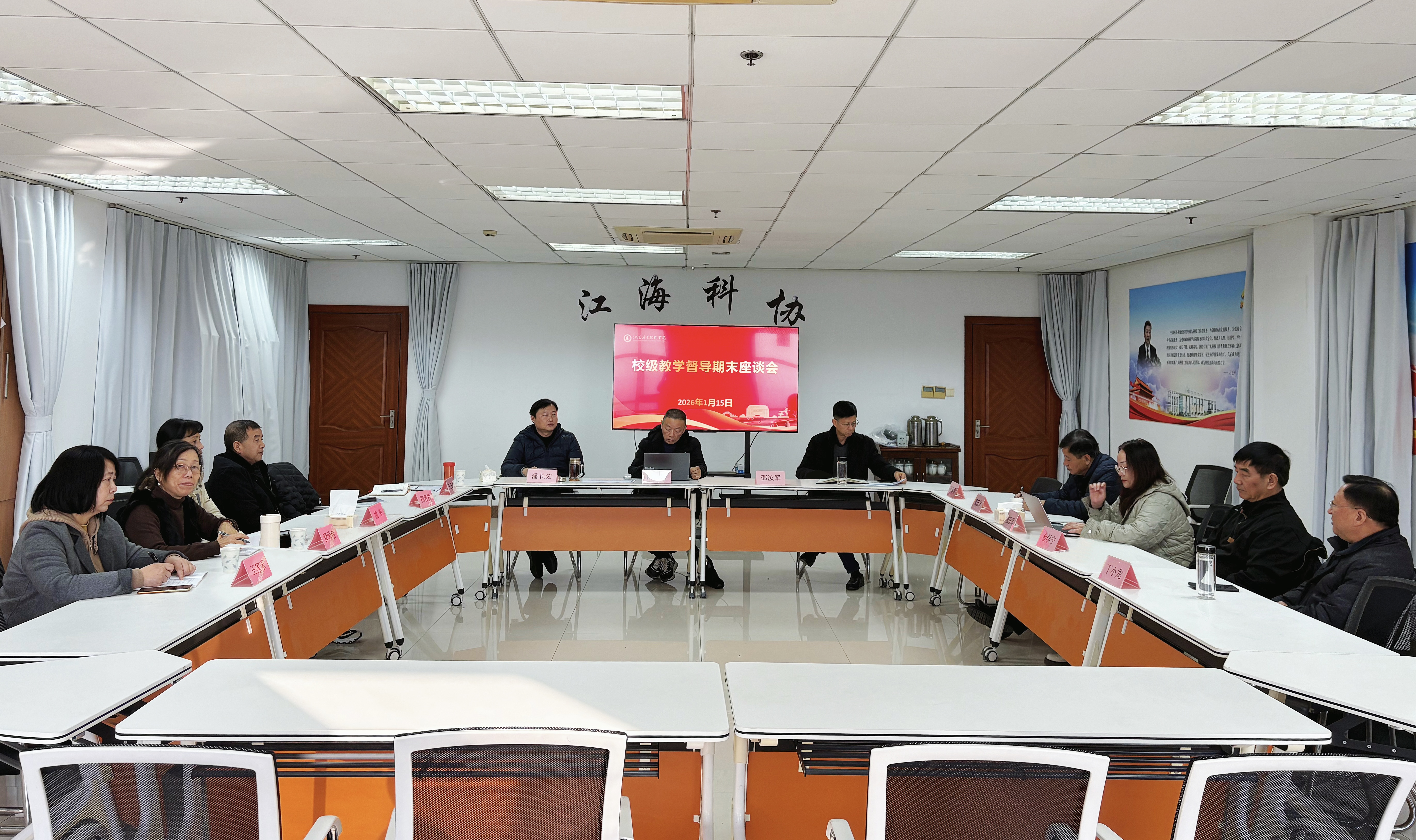 1月15日上午,质量办在图书馆六楼科协会议室召开2025年秋季学期校级教学督导期末座谈会,副校长傅伟、质量办主任潘长宏、校级教学督导组组长邵汝军及校级教学督导代表参加会议。