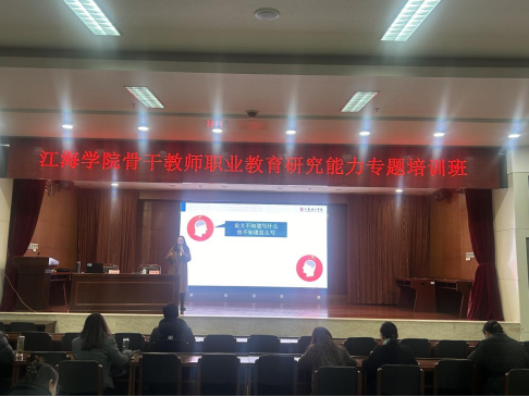 12月17日下午,江海职业技术学院骨干教师职业教育研究能力专题培训班第四场专题讲座在图书馆报告厅举行。
