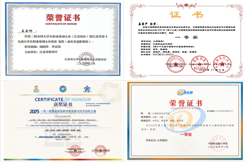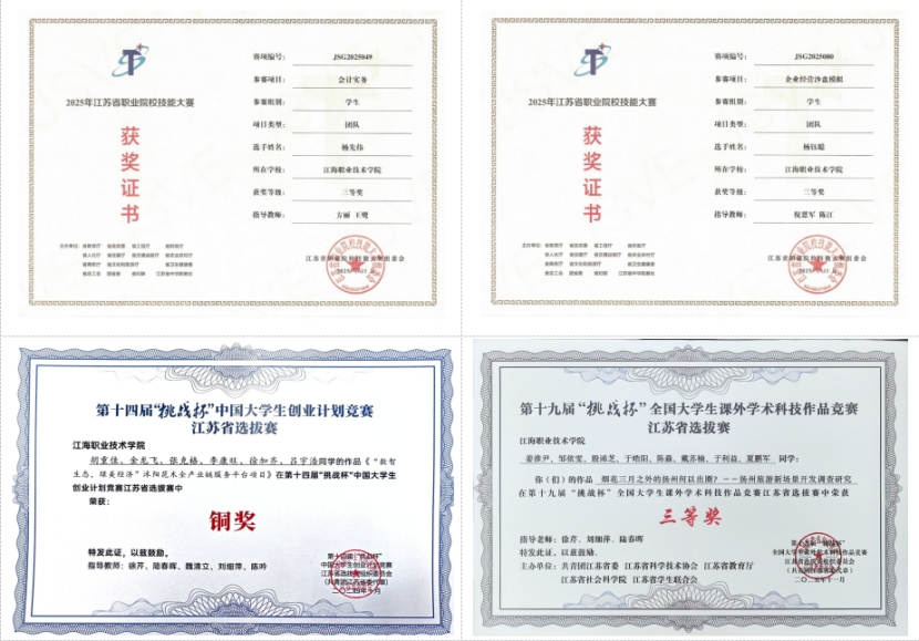 2025年,学生在省职业院校技能大赛、省职规赛、省“挑战杯”、江苏工匠等省级以上赛事中获奖36项。入选江苏省优秀毕业生创业典型案例1项。