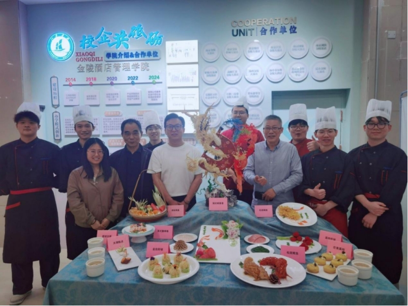 与南京金陵酒店管理有限公司合作共建金陵酒店管理学院,产业学院院长李成勇、柏宝松、王被聘为江苏省产业教授,深度联动旗下24家成员酒店开展学徒制联合办学,累计培养“金陵订单班”学生800余名,真正实现“低学费入学、近距离对接、高起点就业”。