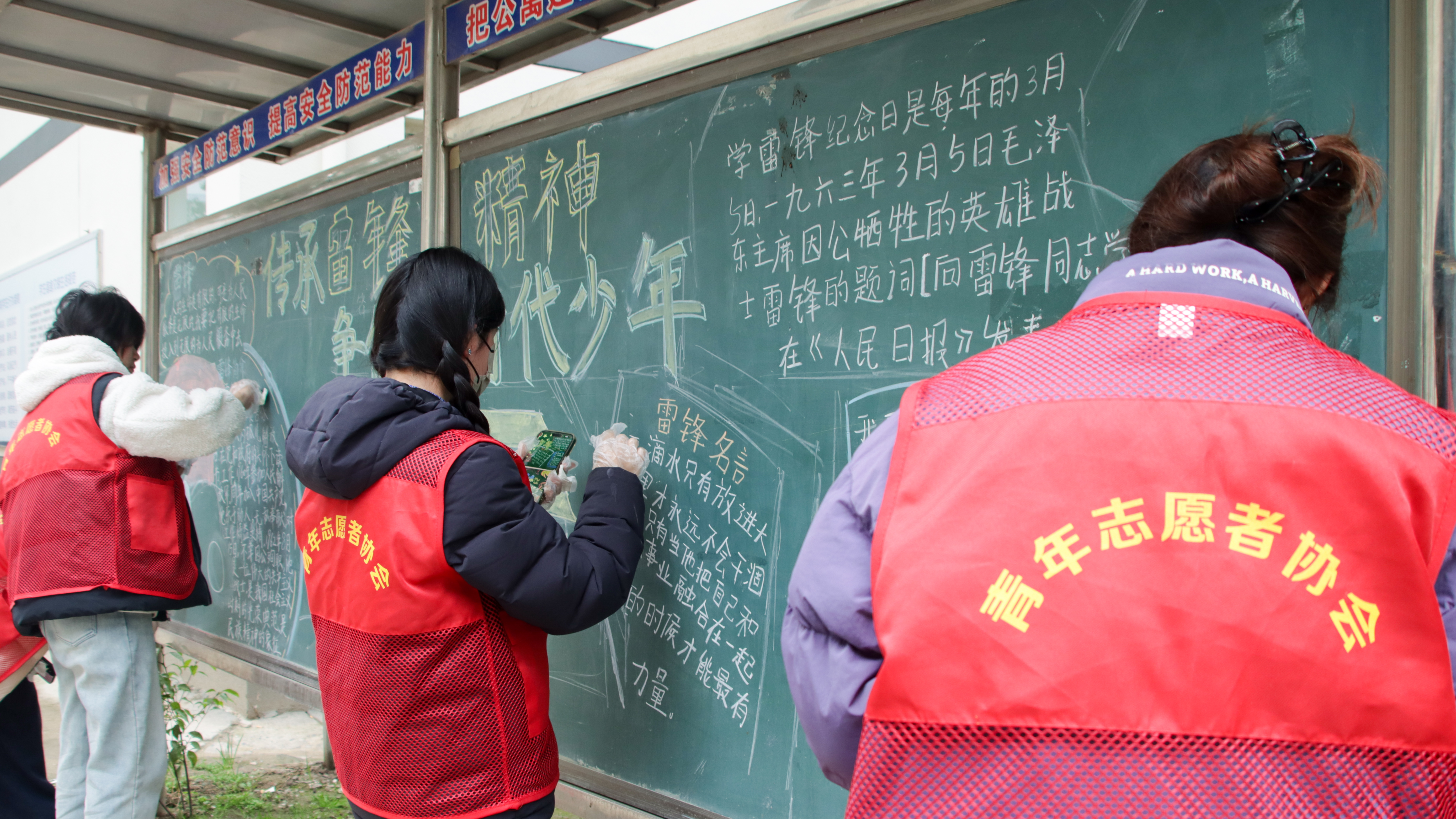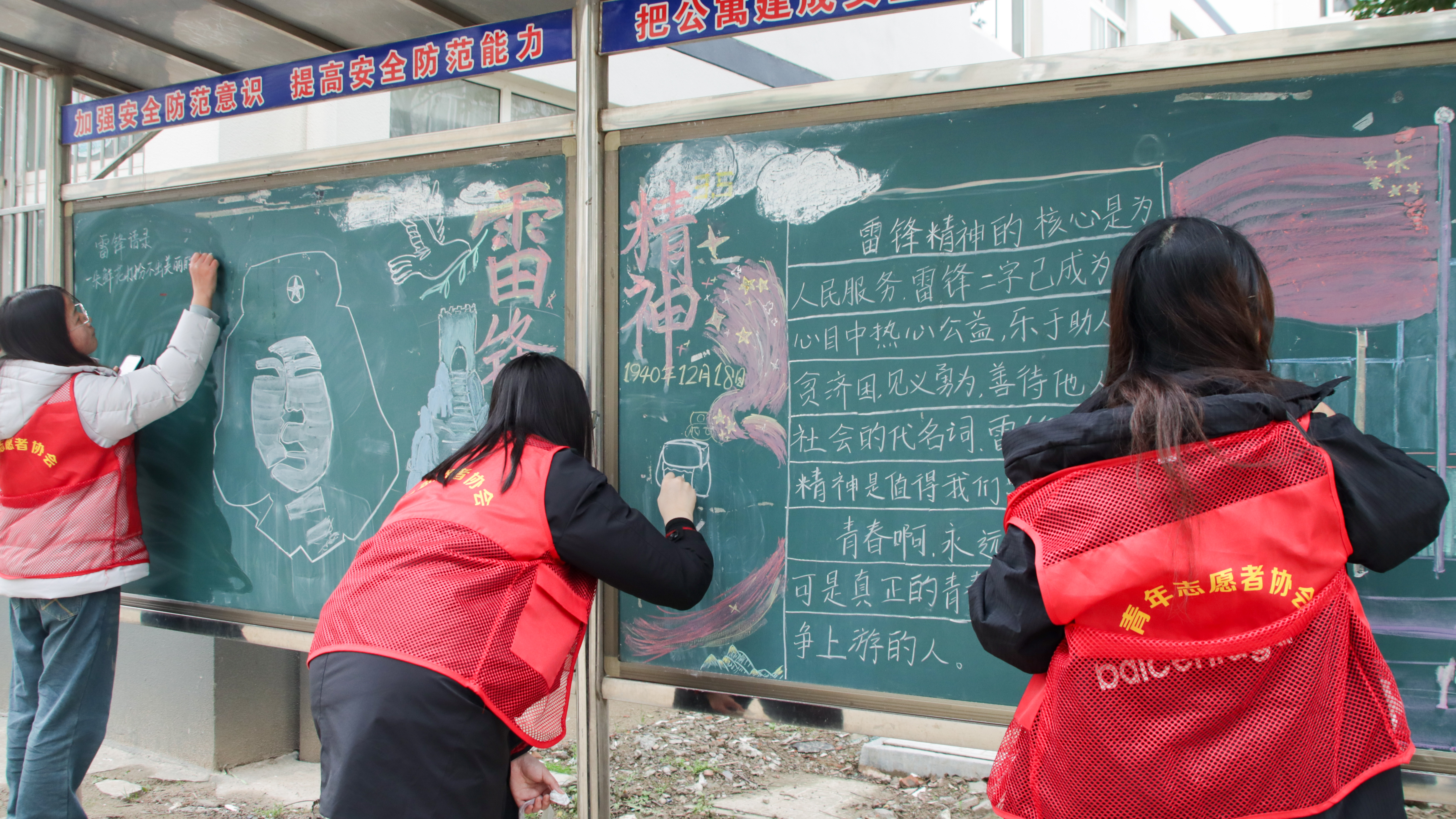 3月5日,校学生会联合青年志愿者协会在生活区开展“学雷锋”主题黑板报创作活动。志愿者们以黑板为阵地、以画笔为载体,精心构思版面、认真书写绘制,一笔一画尽显用心,一字一句饱含敬意,将雷锋同志的感人事迹、崇高品格与“奉献、友爱、互助、进步”的志愿精神巧妙融入创作,把新时代青年对雷锋精神的理解与践行融入一幅幅主题鲜明、内容丰富、色彩明快的黑板报中,更以生动直观的形式让雷锋精神深入人心。