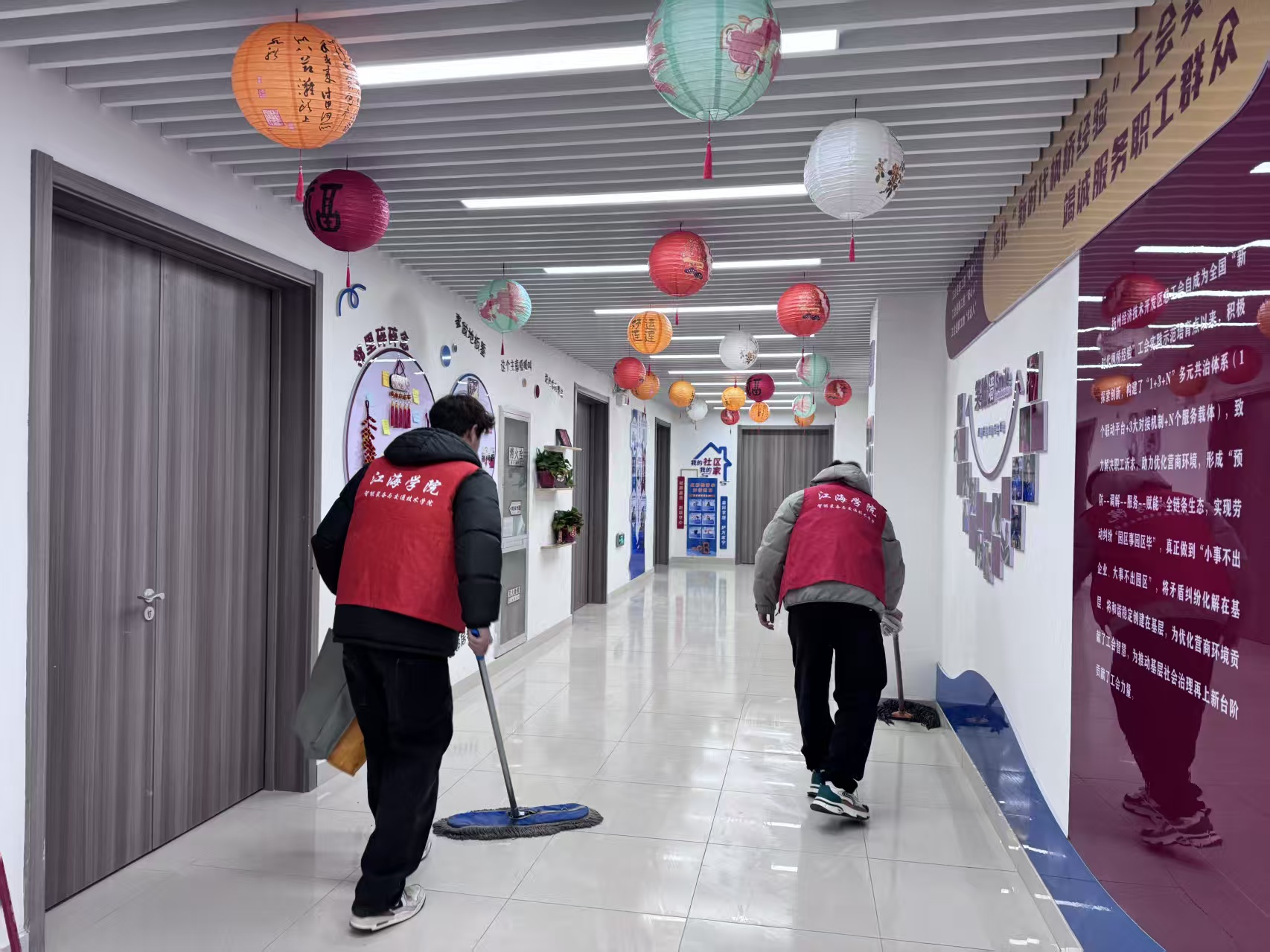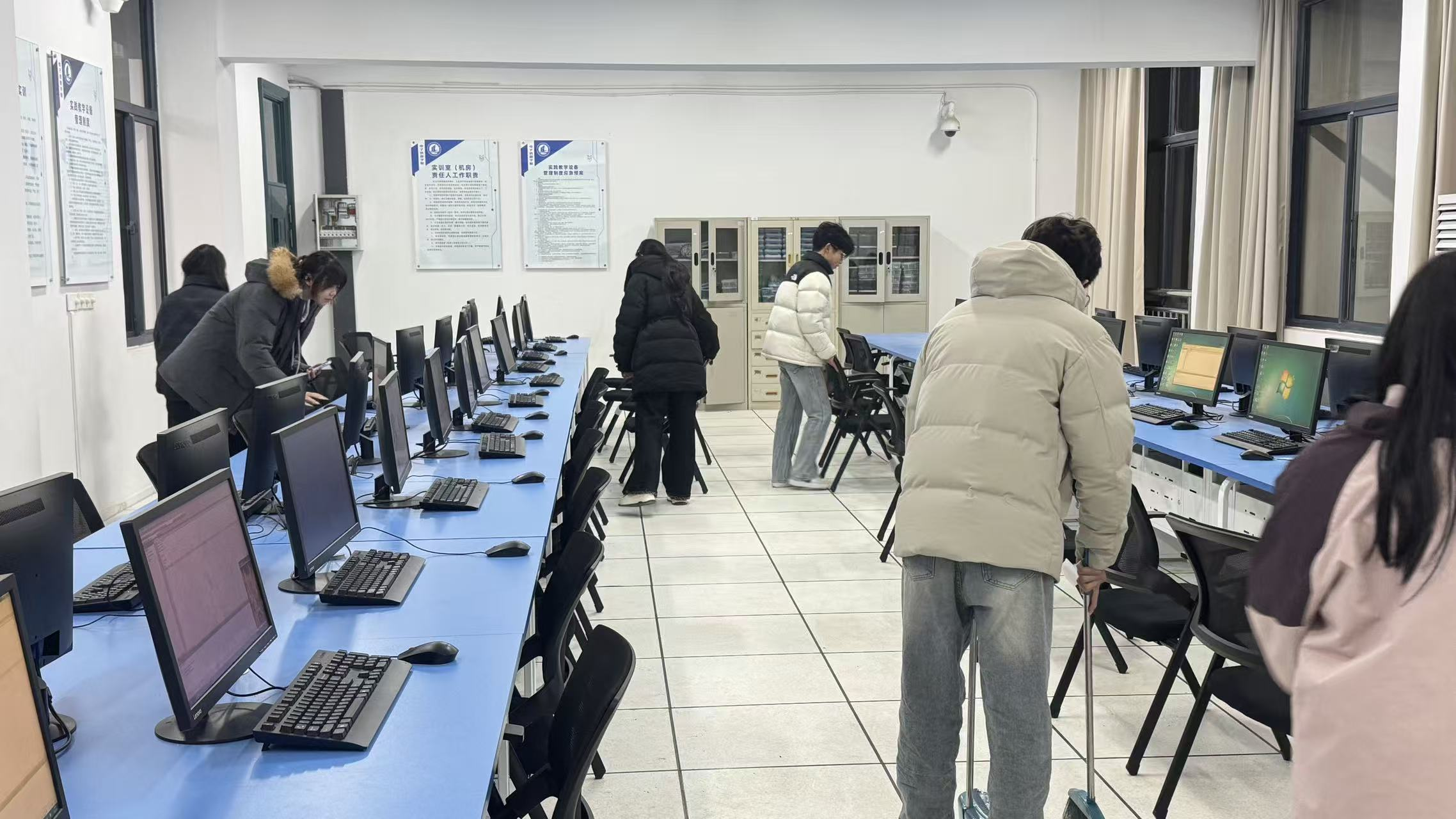 3月4日,学院组织志愿者在敏行楼开展“三月暖春·志愿同行”环保志愿服务活动。志愿者们手持清洁工具,细致清理机房桌椅、键盘缝隙等卫生死角。另一组志愿者沿教学楼周边道路、绿化带认真拾捡垃圾,全面净化校园环境。
