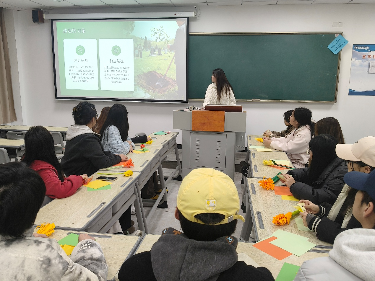 4月2日,学院以文化浸润与手工实践为载体,引导学子缅怀先烈、传承精神。活动中,同学们先系统学习清明习俗与英烈事迹,在图文讲解中重温革命历史,感悟先烈的家国情怀,厚植爱国情怀。大家以彩纸为材折制纸花,将哀思与敬意融入手工花中,以亲手制作的花束寄托追思。