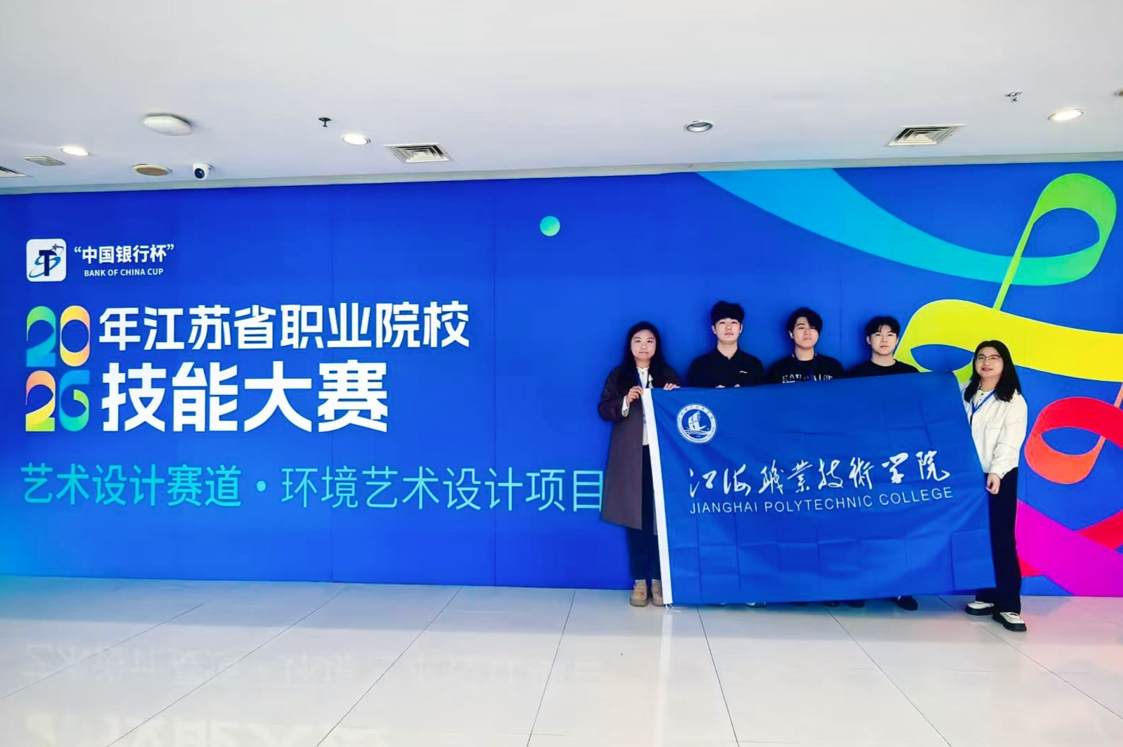 4月11日-12日,2026年江苏省职业院校技能大赛艺术设计赛道环境艺术设计项目圆满落幕,来自54所院校师生竞技、切磋交流,文化创意学院由窦月、朱莎莎老师指导的艺术2402班沈及凯、霍梓良、孙哲琦组成的参赛团队荣获学生组三等奖;贾欣老师荣获教师组三等奖。