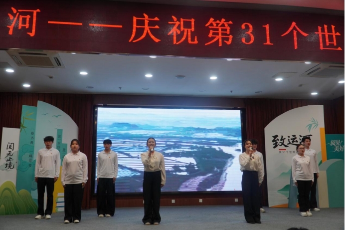 在诵读中,《中国梦、运河情》《桨声月色下的古运河》《运河奔流阅尽中国》《伴你成长》《运河,请聆听诗的脚步》《运河梦扬州情》《桥见古今辉映璀璨名城》《文脉流芳,运河颂》《致运河》等诗歌朗诵、情景剧、合唱等节目精彩纷呈。师生们在字里行间,看见了运河的桨声灯影、市井烟火,看见了运河的家国情怀、时代担当,更看见了扬州这座运河名城的文化根脉与精神力量。